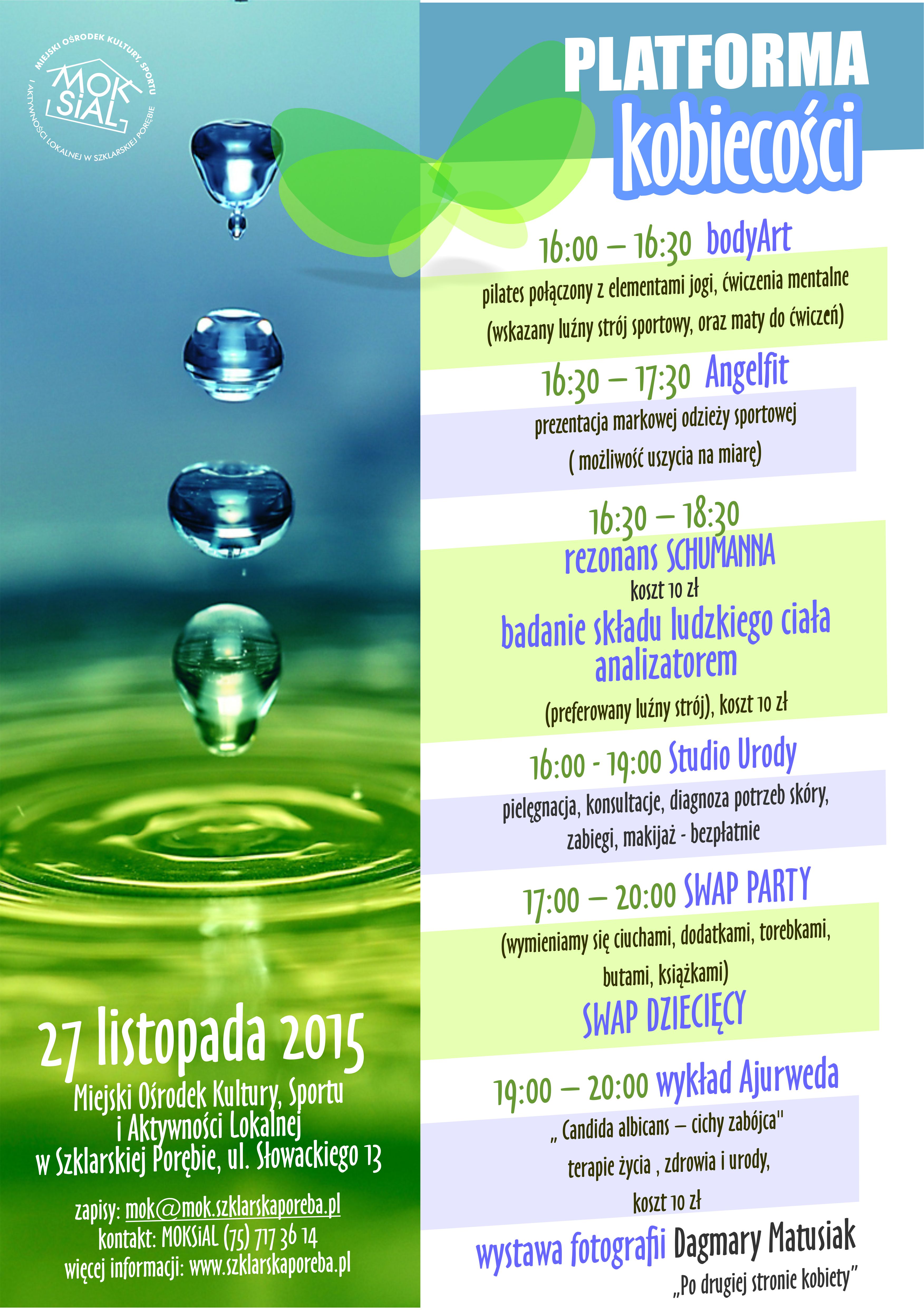 Jesienny czas to nie tylko doskonała okazja, aby zrobić porządki w szafie i wybrać się na Swap Party, ale również by zadbać o swoją kondycję i zdrowie. Na chwilę relaksu, rozmów przy kawie i oderwania się od codziennych obowiązków zapraszamy 27 listopada 2015 r. do Miejskiego Ośrodka Kultury, Sportu i Aktywności Lokalnej w Szklarskiej Porębie.