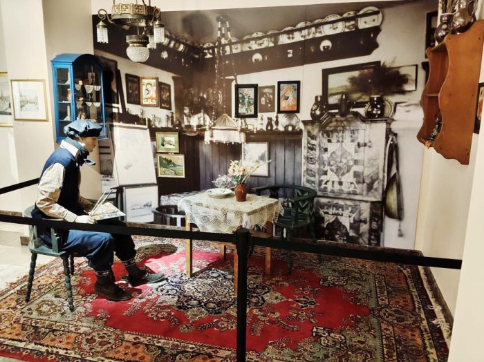 My mieliśmy to szczęście, że po przywitaniu przez dyrektor Muzeum Karkonoskiego panią Julitę Zaprucką mogliśmy skorzystać z oprowadzania kuratorskiego poprowadzonego przez Helenę Skwarek. Pani Helena przybliżyła nam zarówno twórczość Iwana, stosowane przez niego techniki jak i jego życie. Najważniejszym jednak były odczucia zwiedzających, którzy nie kryli swoich zachwytów oglądanymi dziełami. Podczas dyskusji porównywali utrwalone przez malarza widoki karkonoskie czy konkretne obiekty z ich obecnym wyglądem. A, że przybyli do muzeum turyści bywają w otaczających Kotlinę Jeleniogórską górach wiedzieli o czym mówią.