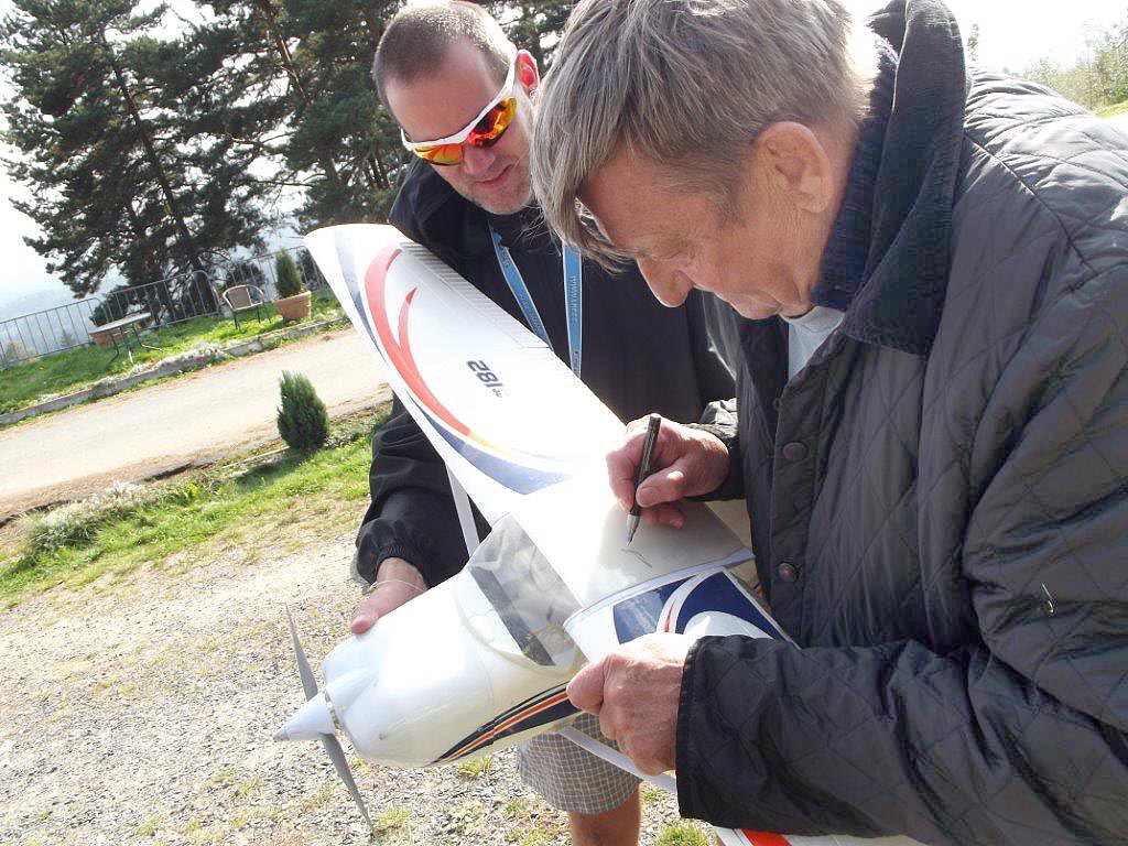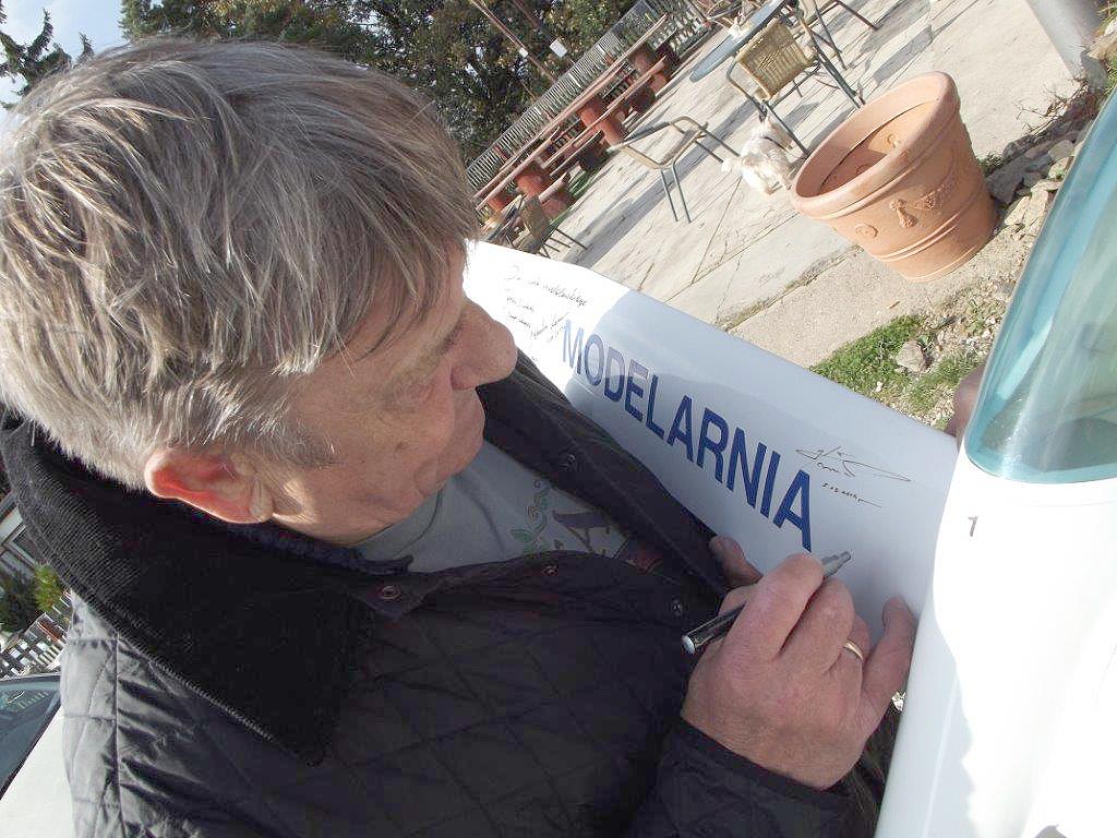 Była okazja by skorzystać z tej pięknej pogody i „przewietrzyć” nasze modele oraz spotkać się z naszym wybitnym gościem. Choć Pan Mirosław miał napięty grafik to znalazł chwilę czasu by z nami porozmawiać i złożyć autograf na naszym reprezentacyjnym modelu. W ten o to sposób model szybowca, który zdobi sufit w sali tradycji lotniczych naszego centrum nosi podpisy dwóch znakomitych pilotów Sebastiana Kawy oraz Mirosława Hermaszewskiego.