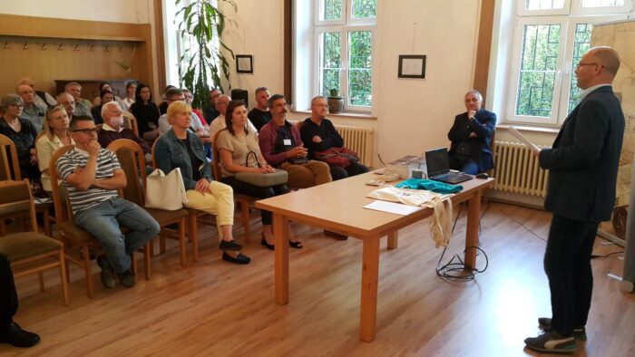 Drugi wykład zaprezentował Wojciech Szczerepa, autor dwujęzycznego katalogu wystawy, w którym zebrał informacje dotyczące początków warzenia piwa w regionie karkonoskim oraz opisy poszczególnych browarów w naszym regionie.