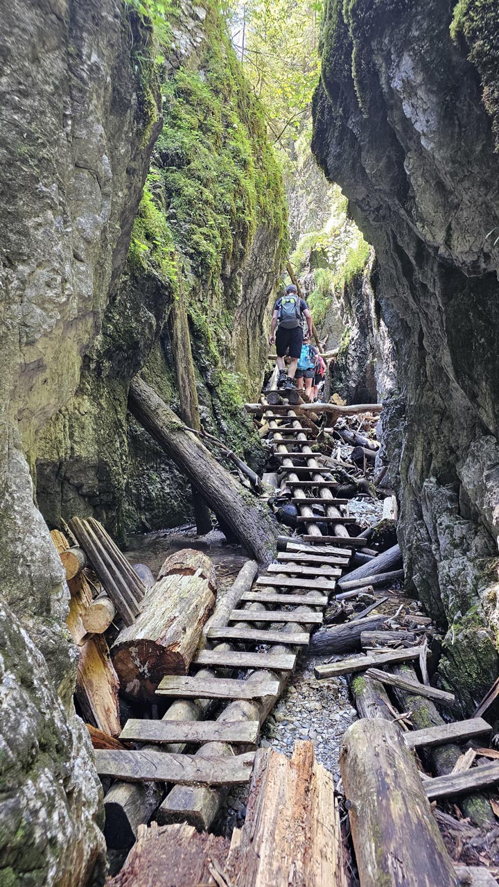 Jeśli na trasie nie ma zbyt wielu osób warto wspinać się tutaj powoli, co chwilę zatrzymując się i uważnie rozglądać. Miejsce to jest wyjątkowe. Momentami ściany wznoszące się ponad 300 metrów nad nami niemal schodzą się do siebie tak, że mamy wrażenie, iż nie przejdziemy dalej.