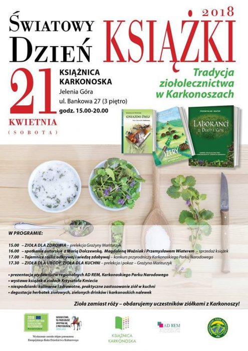 21 kwietnia w Książnicy Karkonoskiej obchodziliśmy Światowy Dzień Książki pod hasłem „Tradycja ziołolecznictwa w Karkonoszach”. Przy naszym stanowisku edukacyjnym można było zdobyć wiedzę o karkonoskich roślinach czy rozwiązywać zagadki, a do domu zabrać ze sobą sadzonki roślin.