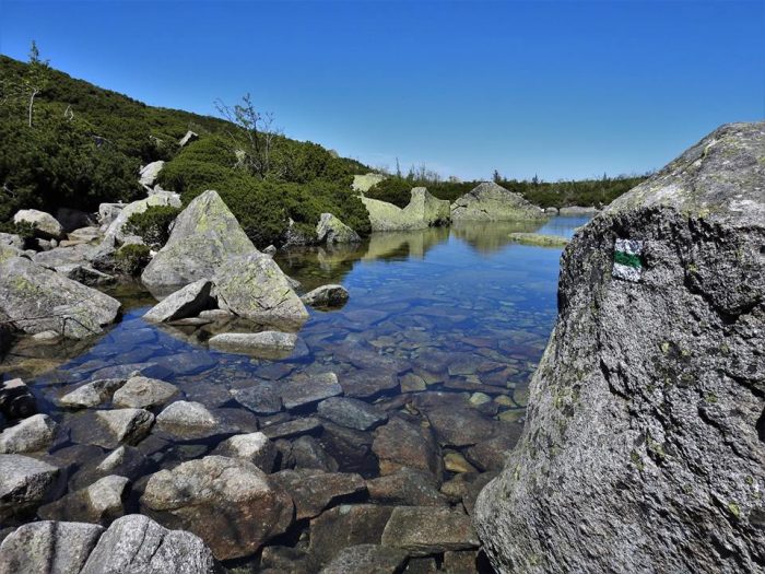 Zielony szlak, Mokra Ścieżka, Ścieżka nad Reglami, prowadzi z Hali Szrenickiej do Pielgrzymów przez Śnieżne Kotły, nad Śnieżnymi Stawkami, dalej przez Czarny Kocioł Jagniątkowski i Przełęcz Karkonoską. Ma długość 21 526 metrów.