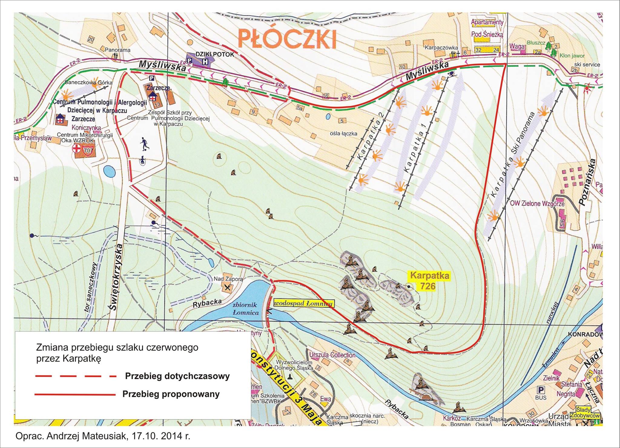 Karpacz: nowy, atrakcyjniejszy przebieg szlaku czerwonego w pobliżu Karpatki.