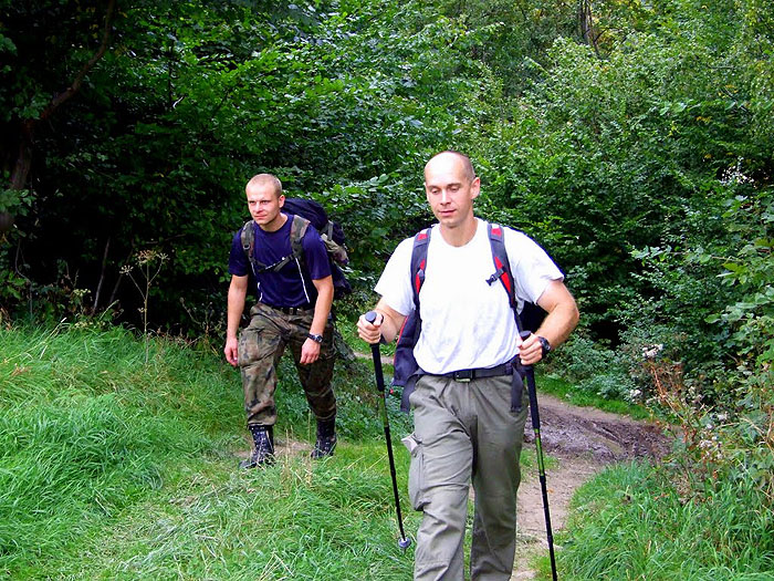 Na początku Rudaw miał takie dziwne uczucie płynięcia. Przypominał sobie, że zawsze gdy jedzie samochodem jako pasażer w nocy, nagle pojawia się nieprzeparta chęć przyśnięcia. Ciężka głowa opada. Nie do zwalczenia, ale teraz przecież szedł i było rano. Przysiadł i oparł głowę na kijkach. Głowa obsunęła się nagle podrywając go gwałtownie z myślą: spałem na stojąco, cholerna choroba dała się we znaki. Jednak ta mili…, mikrosekunda snu zregenerowała go i poszedł dalej już z lekką głową. Zaczął czuć, że żyje. Skalnik, Wołek, jakiś punkt kontrolny, dłuższa rozmowa z poznanymi osobami. Pamięta zwłaszcza z Rudaw Przejściowca przywracającego równowagę biochemiczną organizmu przy pomocy papierosa. Pamięta też z późniejszej drogi ekipę zmilitaryzowaną. Widział, że twarde chłopaki.