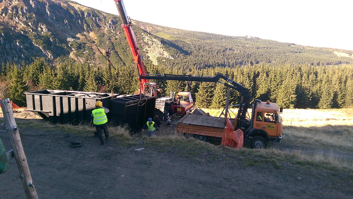 Trwa przebudowa uszkodzonej oczyszczalni ścieków przy popularnym schronisku „Strzecha Akademicka”. Na specjalnych, niskopodwoziowych platformach zostały tam przewiezione ważące ponad 14 ton stalowe komory. Ustawiono je przy pomocy samobieżnych dźwigów. Podczas transportu ograniczono ruch turystyczny na szlaku niebieskim, prowadzącym do schroniska.