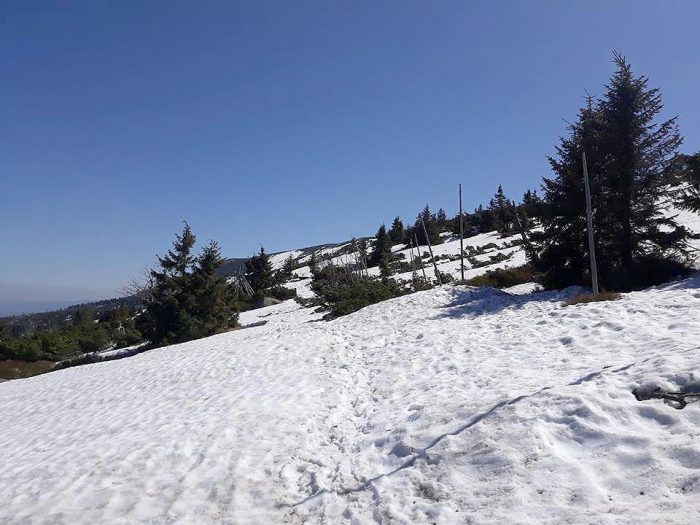 Na tych szlakach turystycznych zalega ok. 50 cm grząskiego śniegu, miejscami są duże wytopienia i jest mokro. Podczas wędrówek w wysokie partie Karkonoszy w dalszym ciągu zalecamy używanie rakiet śnieżnych, raków turystycznych, stuptutów, kijków i dobrze zaimpregnowanych wysokich butów. W planowaniu wypraw górskich o tej porze należy uwzględnić, że czasy przejścia poszczególnych odcinków są nawet 50% dłuższe niż w okresie letnim.