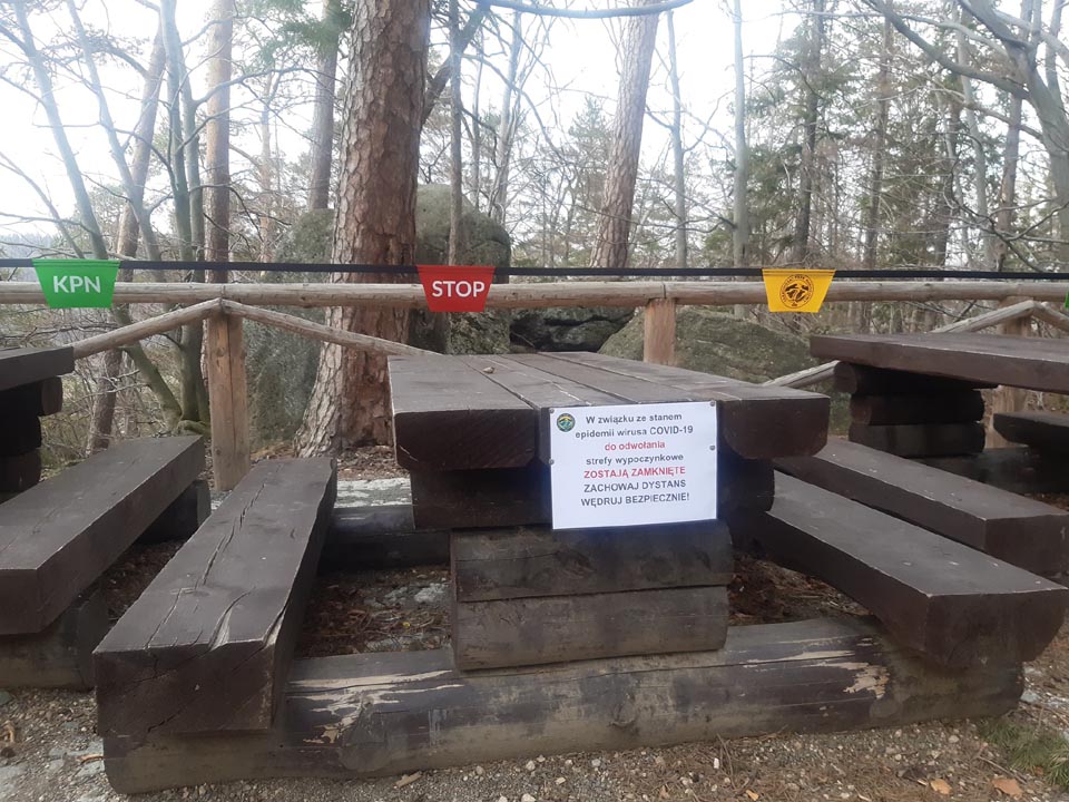 W Karkonoskim Parku Narodowym zamknięte są z powodu zagrożenia epidemiologicznego miejsca odpoczynku przy szlakach, a także następujące szlaki: