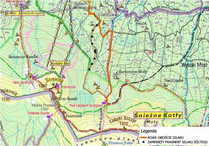 Koniec utrudnień na żółtym szlaku w Nadleśnictwo Szklarska Poręba, Lasy Państwowe. Jak informują nasi koledzy z nadleśnictwa, zamknięty od 21.08.2017 odcinek żółtego szlaku turystycznego w leśnictwie Szronowiec jest już otwarty. Dołączamy mapkę, na której gwiazdkami zaznaczony jest wyłączony wcześniej fragment.